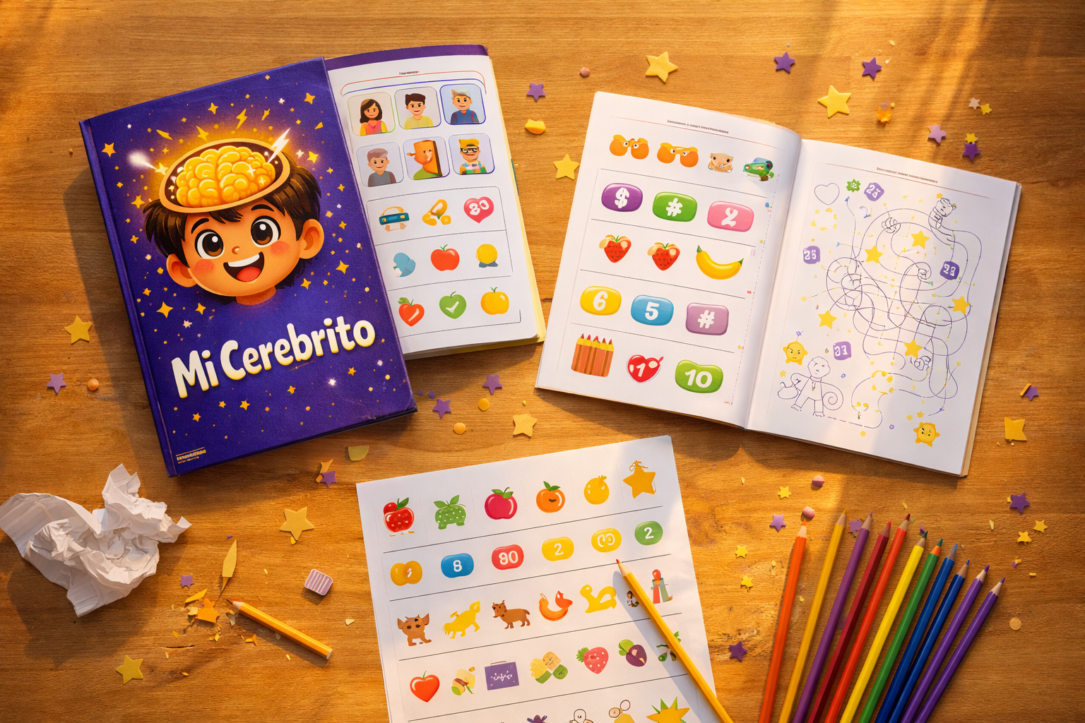 Esto no es un libro de texto ni un curso de neurociencia. Son 105 actividades imprimibles diseñadas para que tu hijo entrene su cerebro mientras cree que está jugando. Solo necesitás una impresora, lápices de colores y 10 minutos al día.