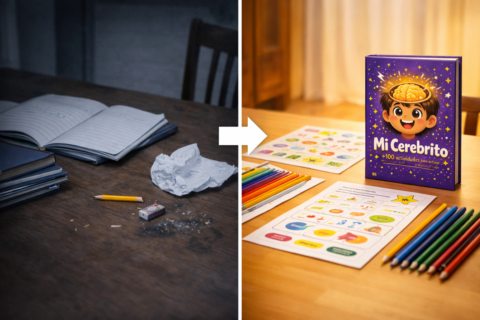 Un hijo que se concentra más rápido — sin peleas, sin gritos, sin "no puedo". La misma tarea que antes tardaba 1 hora, en 20 minutos.